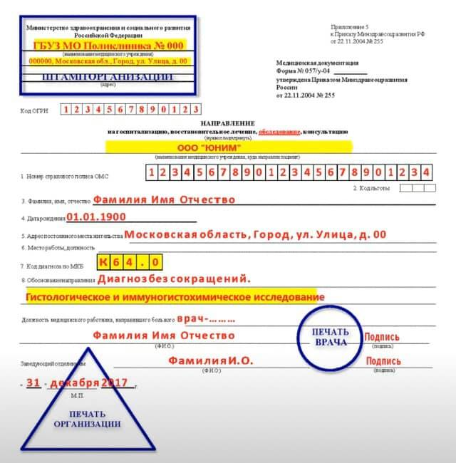 3) Заявление на имя главного врача поликлиники с просьбой в выдаче направления (форма 057-у) со ссылкой на федеральный закон.