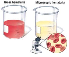 Наличие макрогематурии требует срочного обследования больного. Основным методом диагностики служит цистоскопия, которая позволяет определить источник кровотечения в мочевом пузыре или сторону поражения, если причиной гематурии является заболевание почки или мочеточника.