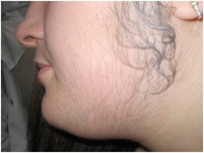 К гипертрихозу также относят гирсутизм – наблюдается только у женщин. Это патологическое оволосение наблюдается в андрогензависимых областях тела (на лице, груди, спине, ягодицах), то есть идет по мужскому типу.