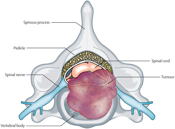 Это тяжелое и частое осложнение онкологического заболевания. Ранний диагноз и быстрое начало лечения являются решающими факторами предотвращения повреждения функции спинного мозга, характеризующегося парезами/параличами и/или нарушением деятельности органов малого таза.