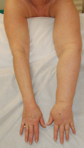 Это самый простой способ диагностики лимфедемы. Оценку результата проводят в сравнении с противоположной стороной. Ориентирами измерения являются области кисти, лучезапястного сустава и области на 5 см выше и ниже локтевого сустава. Диагноз ставится, если разница окружностей верхних конечностей составляет более чем 2 см.