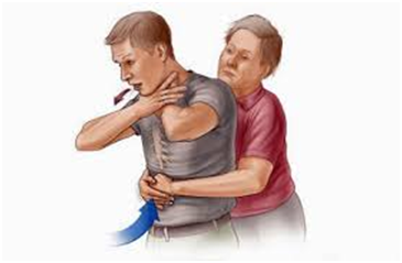 В случаях, когда больной не может кашлять или такая манипуляция не помогает, можно для устранения полной обструкции дыхательных путей инородным телом на догоспитальном этапе применить прием Геймлиха.